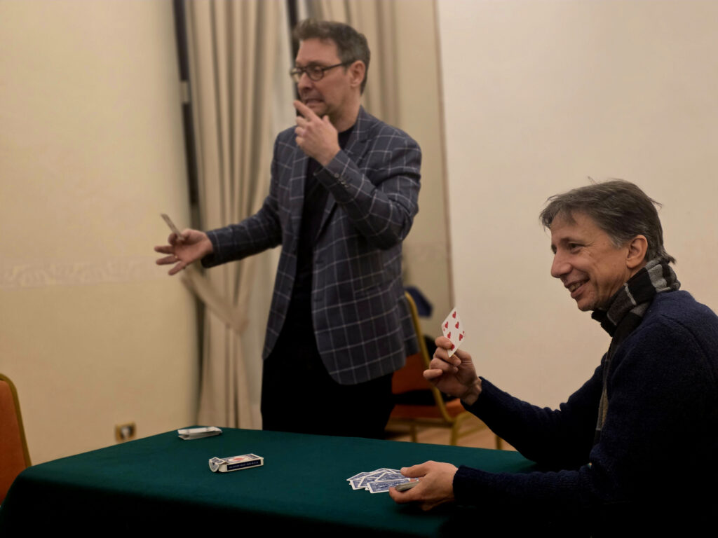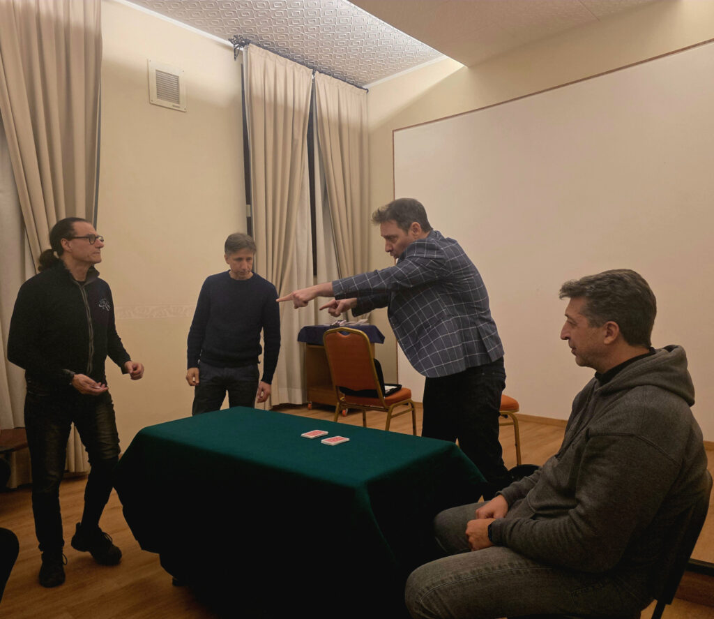 As often happens with great lecturers, Otero arrived early at the club. Before the official start, he generously engaged with the magicians already present, answering questions, discussing techniques, and sharing theoretical insights.