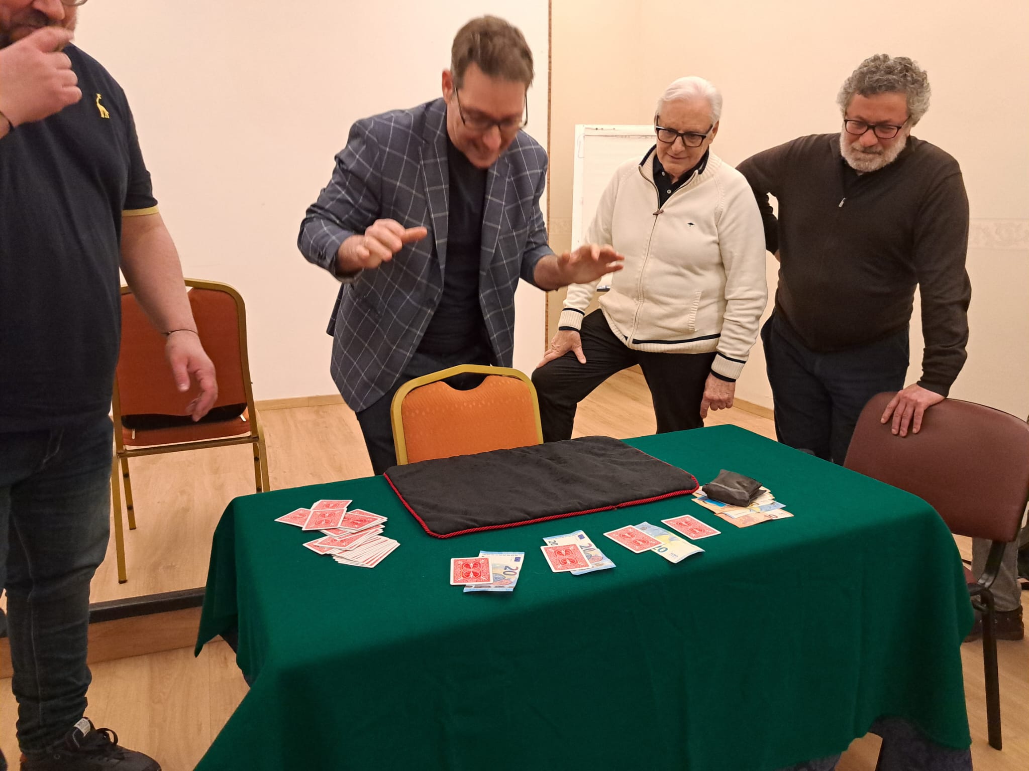 As often happens with great lecturers, Otero arrived early at the club. Before the official start, he generously engaged with the magicians already present, answering questions, discussing techniques, and sharing theoretical insights.